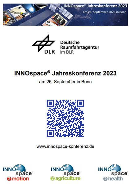 Besuchen Sie die netzwerkübergreifende INNOspace® Jahreskonferenz 2023 mit den Branchen Raumfahrt, Mobilität, Agriculture und Gesundheit. Die Fachkonferenz findet am 26. September von 10 Uhr bis 17 Uhr in Bonn statt. Die Registrierung zur Veranstaltung ist über die Website möglich: