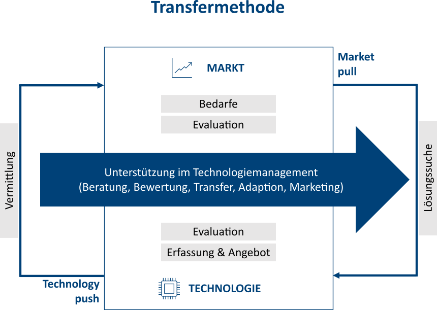 Unter Technologietransfer wird der Transfer von Know-how und Technologien bezeichnet. Technologien umfassen die unterschiedlichsten Technologiebereiche, wie z.B. Materialien & Verfahren, Automation & Robotik, Sensoren & Messtechniken, Mechanische Komponenten, Biowissenschaft, Medizin & Pharmazie, Kommunikation, Elektronik & Optoelektronik sowie Energie. Hierzu gehören zudem die Bereiche Computer Hard- und Software mit VR, AR, KI, Test und Simulation sowie der Dienstleistungsbereich.